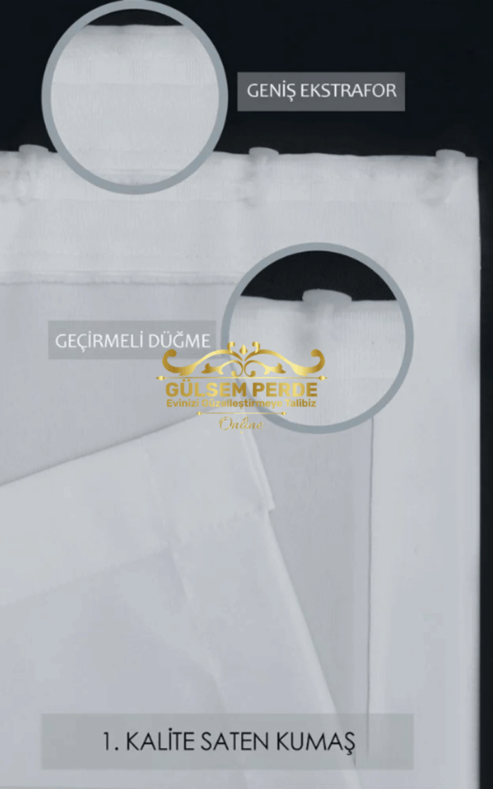 Güneşlik Perde Atlas saten kumaşı sayesinde pürüzsüz, parlak ve lüks bir görünüme sahiptir. Beyaz rengiyle mekâna sıcaklık ve ferahlık katarken, zarif bir dekoratif tamamlayıcıdır. Işık geçirgenliği dengeli olduğu için odanızı hem aydınlık hem de rahat bir şekilde mahrem hale getirir. Modern ve klasik dekorasyonlarla uyum sağlayarak oturma odası, yatak odası veya çalışma odasında tercih edilebilir.